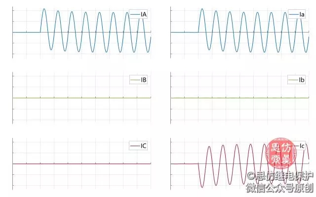根據(jù)d側(cè)三角繞組的電流,繪制出Y側(cè)繞組的電流: