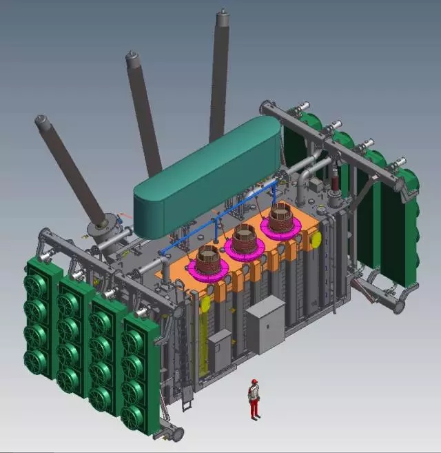 鐵芯框架采用高強度合金鋼材打造,給變壓器其它部件強有力的支撐;引線的連接布置復雜但合理,讓上萬安培的大電流在變壓器內部的流動井然有序。簡單來說,變壓器內的繞組,鐵芯,與器身組成了結實可靠的內部結構,讓這個大塊頭有一顆強大的“心”。