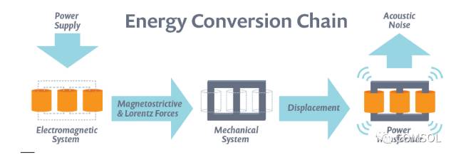 除鐵芯噪聲外,線圈中的交流電還會在各個繞組內產生洛侖茲力,造成振動,即載荷噪聲,并以機械能的形式傳遞到外殼。