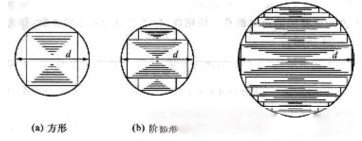 鐵心柱的截面形狀與變壓器的容量有關,單相變壓器及小型三相電力變壓器采用正方形或長方形截面,如圖2—22(a)所示;在大、中型三相電力變壓器中,為了充分利用繞組內圓的空間,通常采用階梯形截面,如圖2—22(b)、(c)所示。階梯形的級數越多,則變壓器結構越緊湊,但疊裝工藝越復雜。